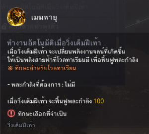 1.สกิลเมฆพายุ สกิลพายุเป็นสกิลติดตัวน้อง โดยทุกครั้งใช้ทักษะ วิ่งเต็มฝีเท้า พละกำลังจะฟื้นฟู 100
