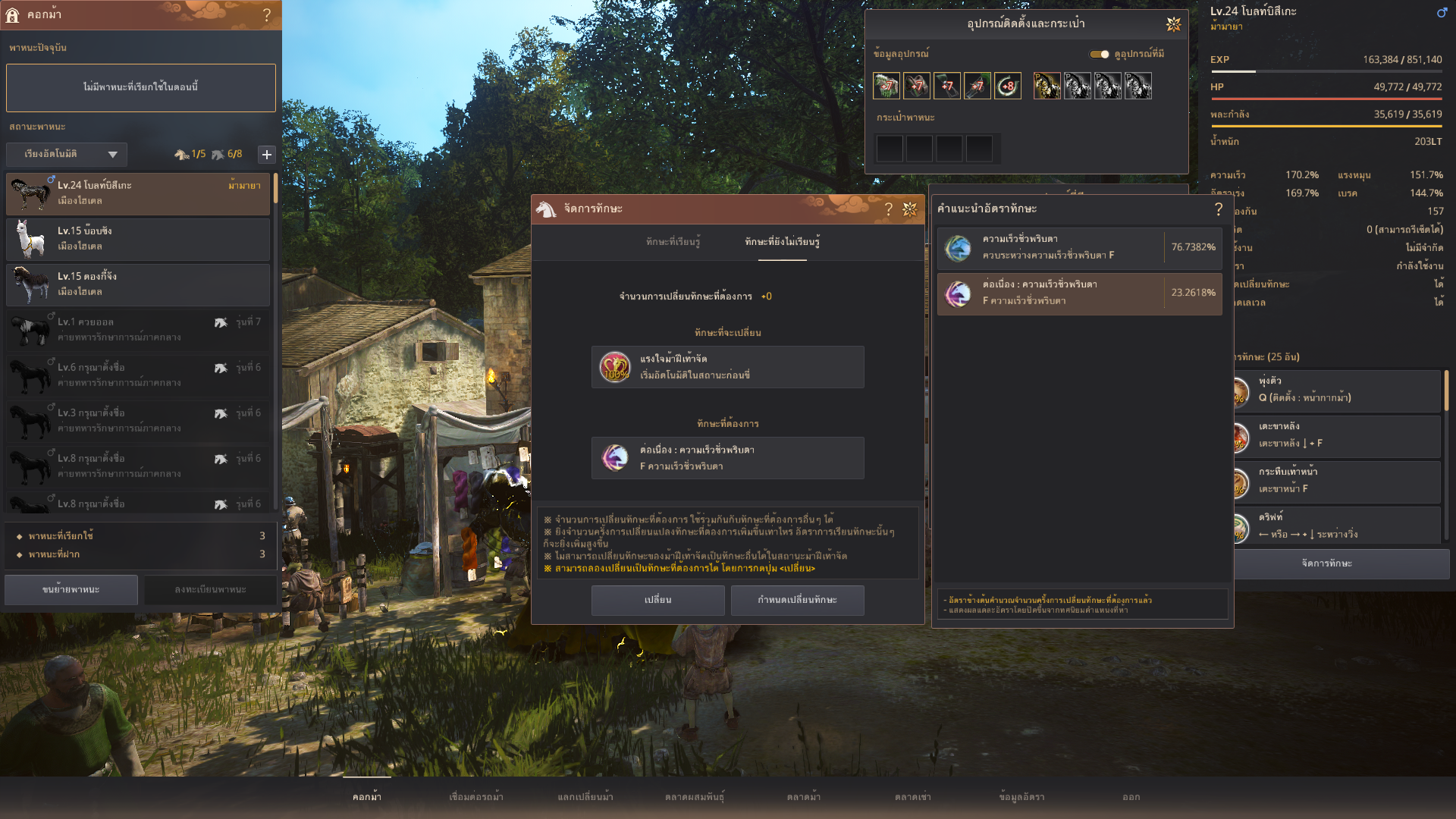 วิธีรีสกิลก็เหมือนม้า 9 ม้า 10 ตัวอื่นๆเลยค่ะ คือเลือก แรงใจม้าฝีเท้าจัด ในการแลกสกิล