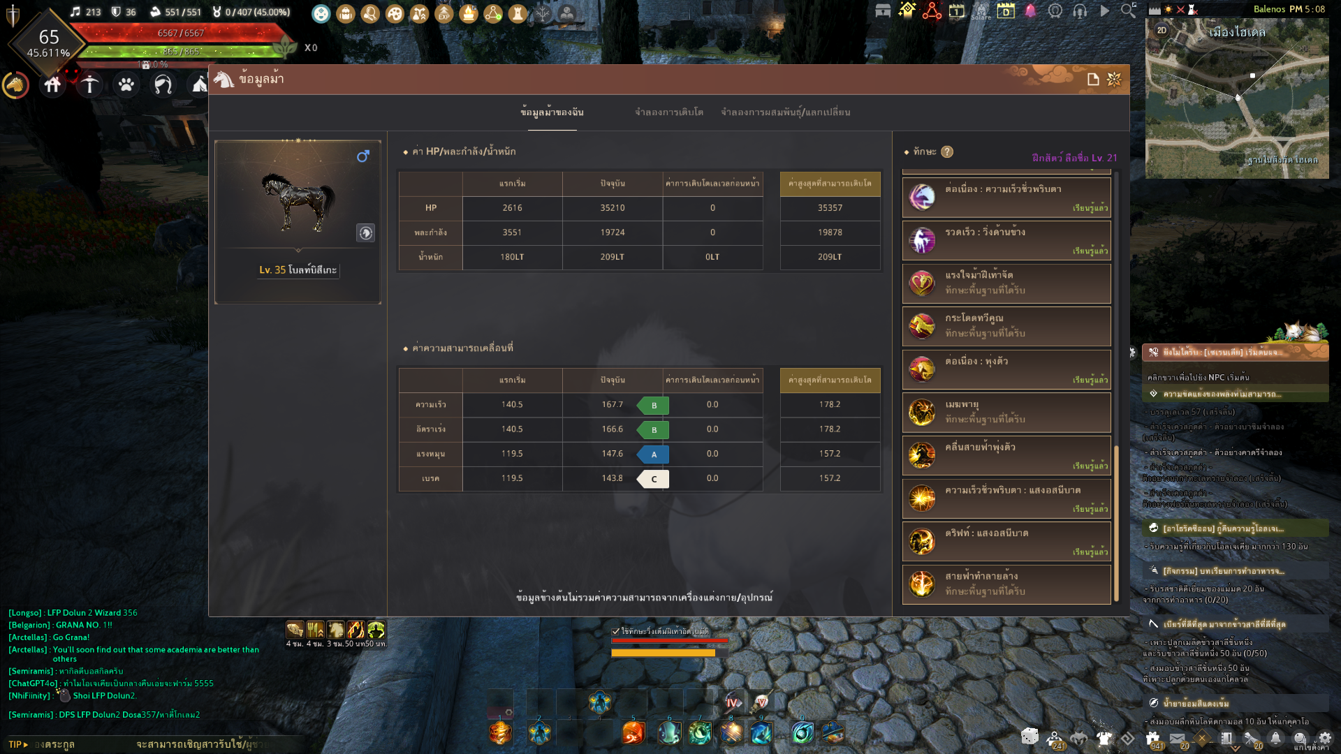 เฟลนัวร์ก็จะเช็คเลเวลม้าก่อน ว่า ห่างกับจำนวนสกิลเท่าไหร่