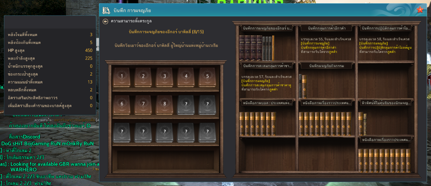 13. สมุดผจญภัย ผมทำไว้แค่เล่ม 8 ได้ ap+3 dp+5 ถ้าครบ 15 เล่มจะได้ ap+9 dp+9