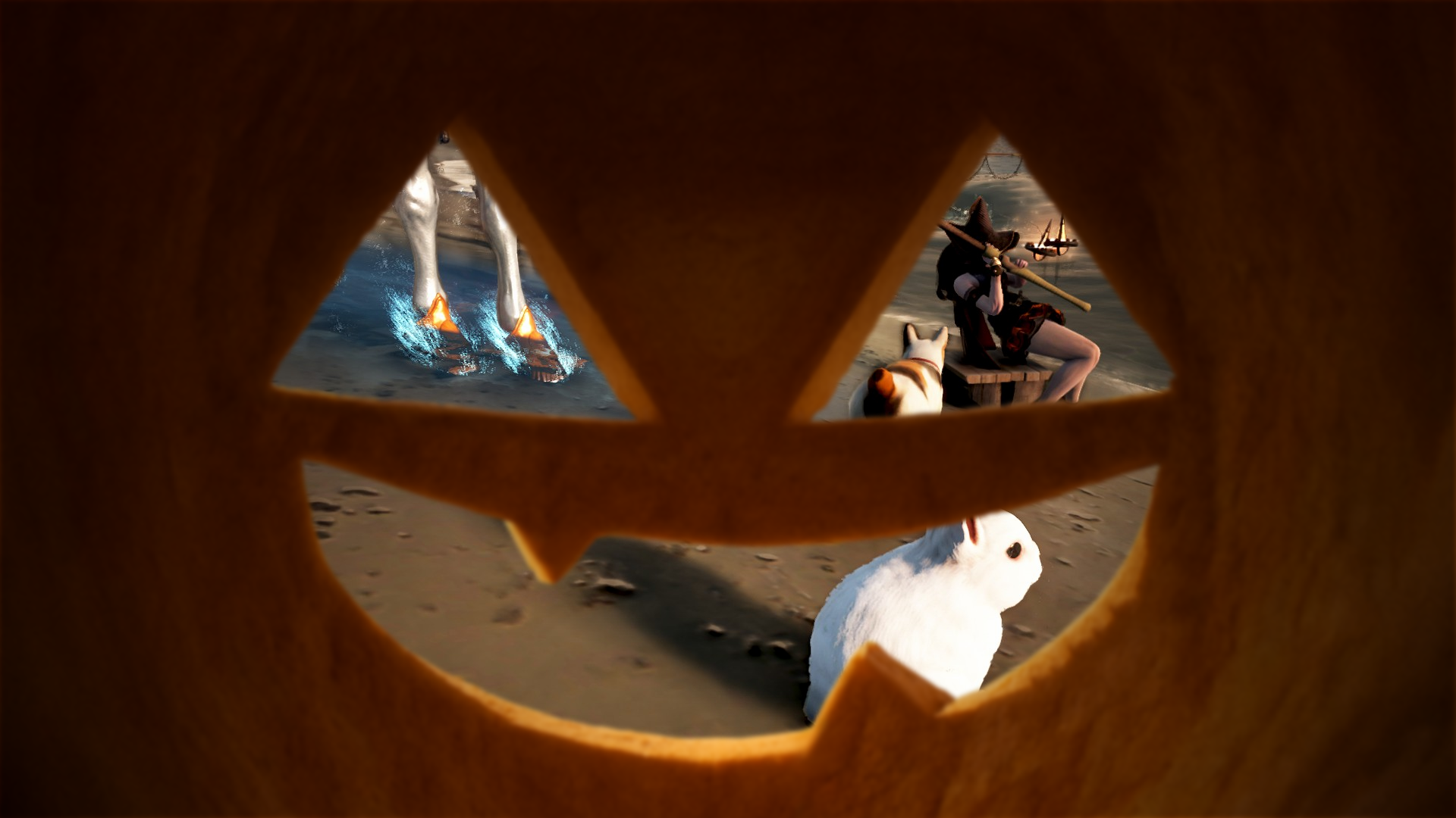 Feat. Felana the level 59 Valkyrie, her steed, cat, and rabbit.