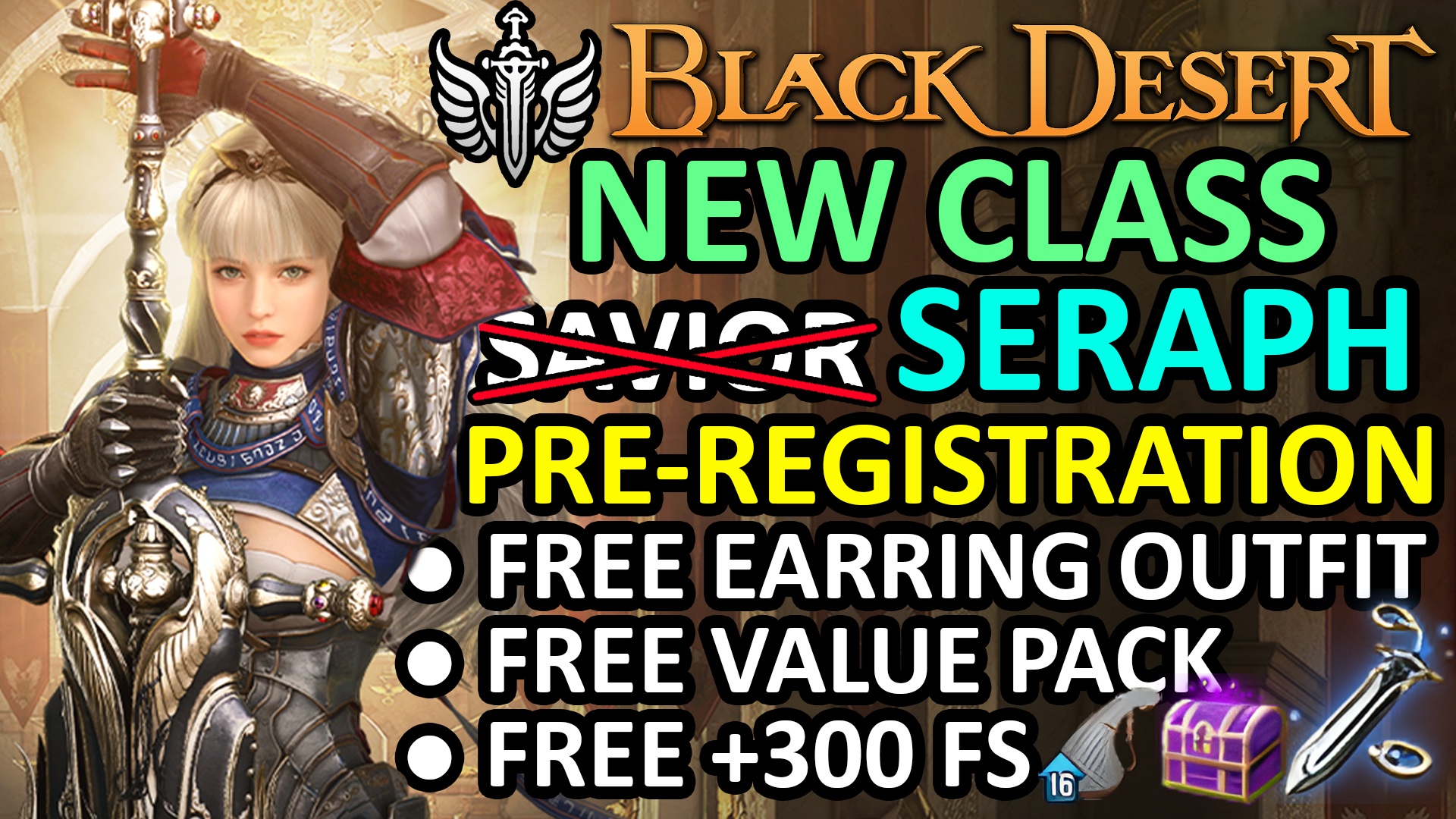 This Post about FREE EARRING OUTFIT, FREE VALUE PACK, FREE +300 FAILSTACK, FREE +16 SLOT INVENTORY, NEW CLASS SAVIOR (SERAPH) PRE REGISTRATION GUIDE & INFO (BLACK DESERT ONLINE) BDO
