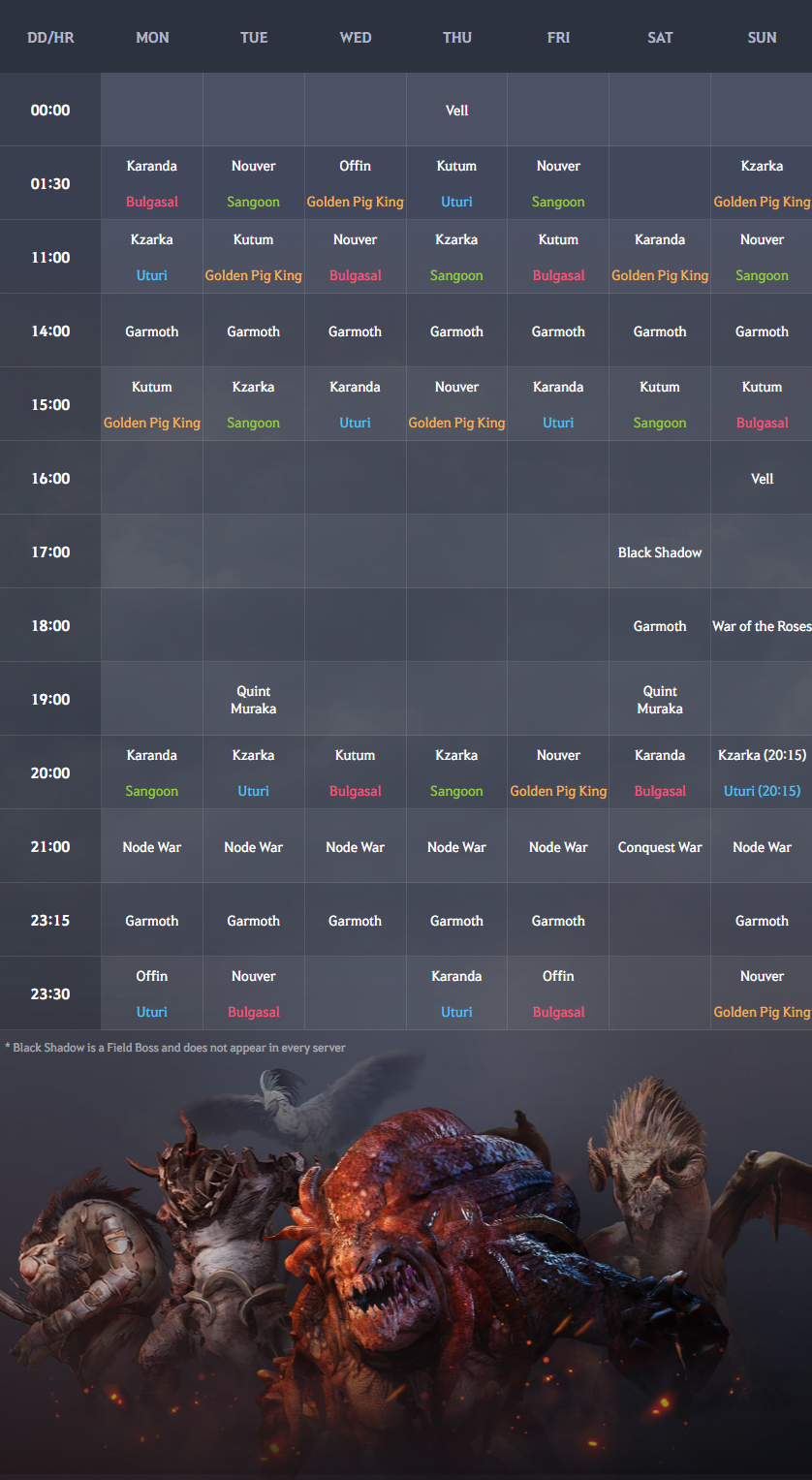 ◆ Schedule for When World Bosses Appear (Black Desert World)