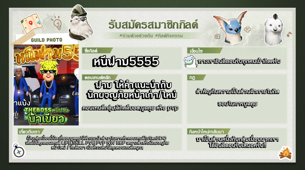 ยินดีต้อนรับนักผจญภัยทั้งหน้าใหม่หรือเก่าสู่กิลด์หนีฟาม5555