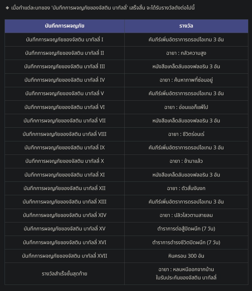 จะสามารถทำเควส "[บันทึกการผจญภัย] ตามหาจัสติน บาทัลลี่" ได้