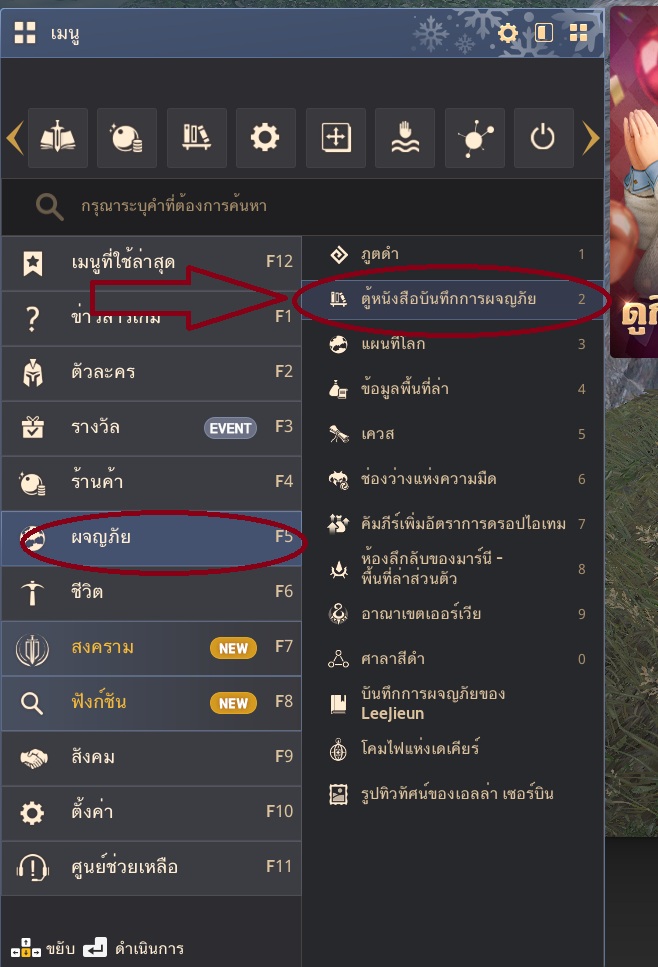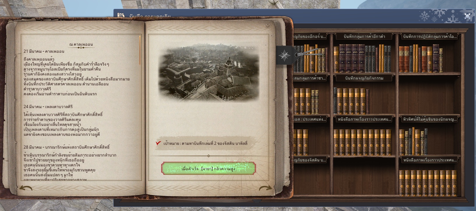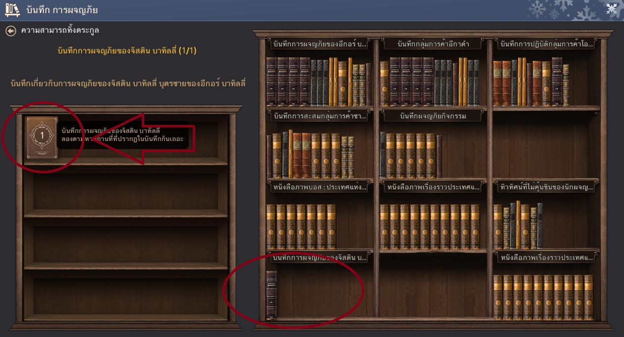 จากนั้น บันทึกการผจญภัยของจัสติน บาทัลลี่ จะขึ้นที่ [เมนู (ESC) - การผจญภัย (F5) - ตู้หนังสือบันทึกการผจญภัย (2)]