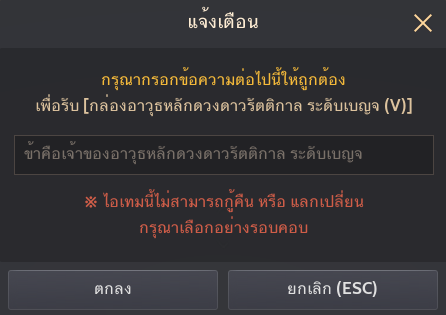 ขอให้ทำการเลือกอย่างรอบคอบ เนื่องจากเมื่อกรอกข้อความและเลือกเรียบร้อยแล้ว จะไม่สามารถกู้คืนและแลกเปลี่ยนได้