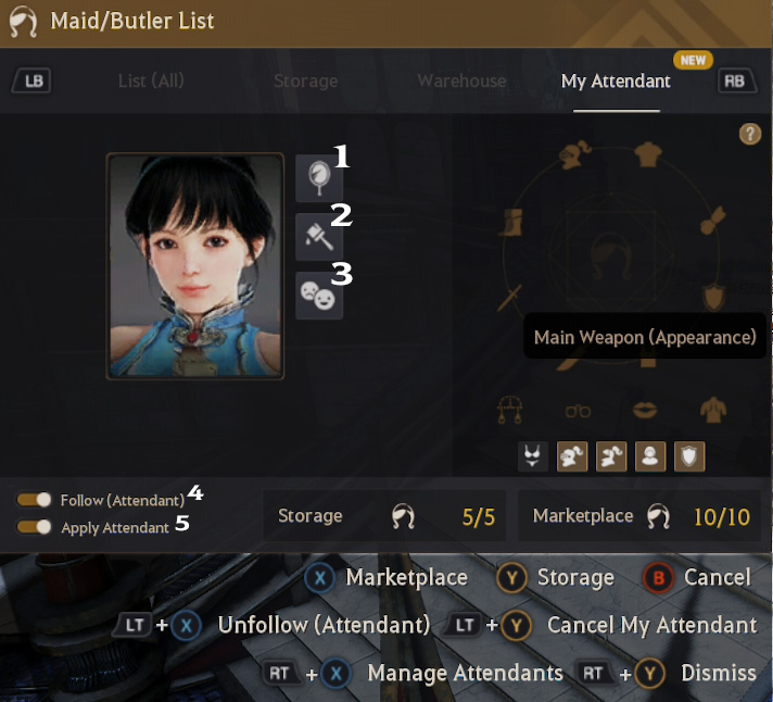 - If you apply My Attendant's appearance to your maids/butlers, only My Attendant will appear in your residence if the Maids/Butlers feature is enabled.