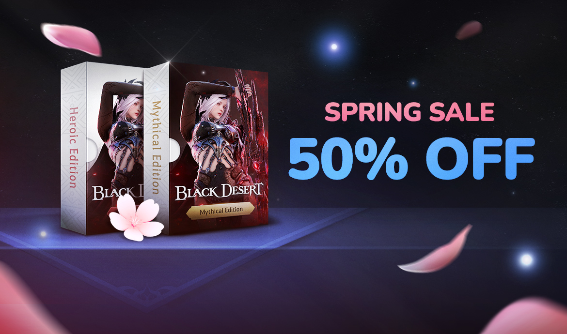 Adventurers can enjoy a huge sale on the Heroic · Mythical Edition & Item Pack of Black Desert at 50% off during the promotional period!